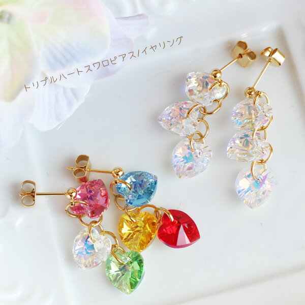 ハートは角度を変える度にキラキラ瞬く本物のスワロフスキー! カラフルなマルチなカラーと ゴージャス&シックなオーロラカラー あなたはどちらがお好み? ◆有料タイプのキャッチ式チタン・樹脂ピアスへ金具変更ご希望の方は【コチラ】 より必要個数をショッピングカートに商品と一緒にお選び頂きご注文くださいませ。