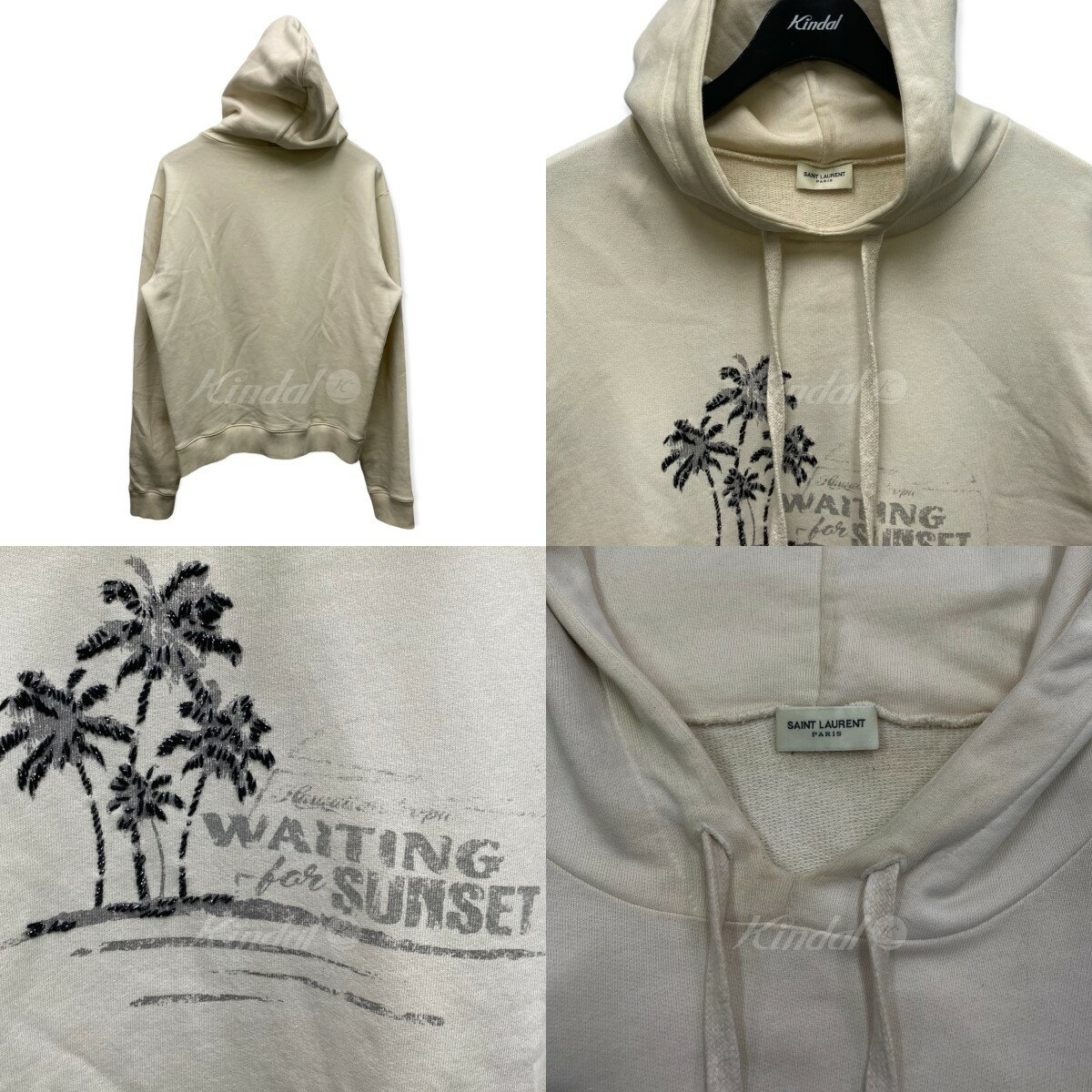 【中古】SAINT LAURENT PARIS18SS ビジューパームツリープルオーバーパーカー ナチュラル サイズ:M【価格見直し】