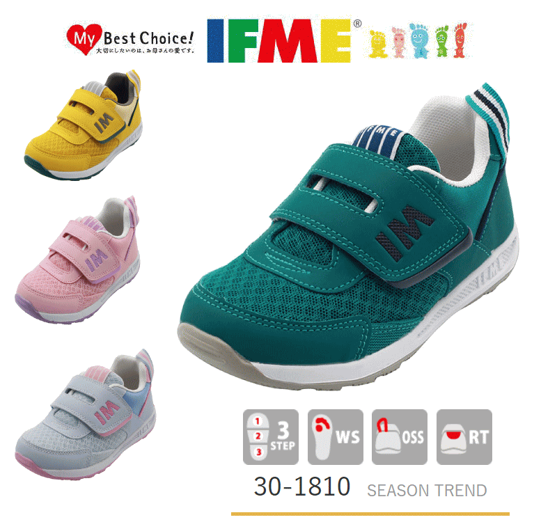 イフミー IFME 1810 キッズ ジュニア スニーカー イフミーライト シューズ 子供靴 男の子 女の子 ベルクロ ローカット 通園 普段履き グリーン ピンク イエロー サックス おしゃれ かっこいい かわいい 黄色 青 外反母趾 偏平足 反射材 15cm 16cm 17cm 18cm 19cm