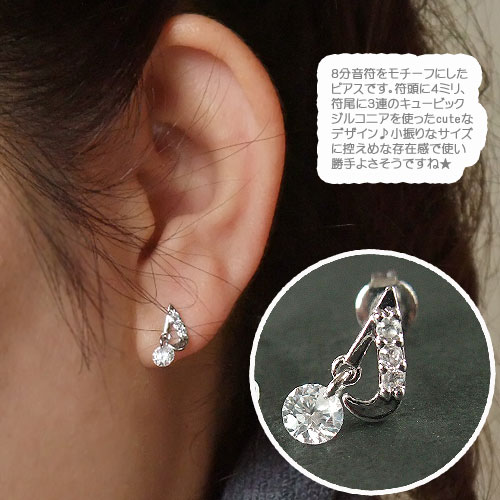 )をモチーフに符頭に4ミリ、符尾に2ミリのキュービックジルコニアを使った煌びやかなピアスです。