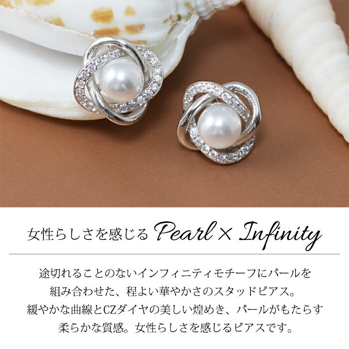 ※「S925」の刻印あり 【両耳分1セット】 女性らしさを感じる”パール × インフィニティ ”。